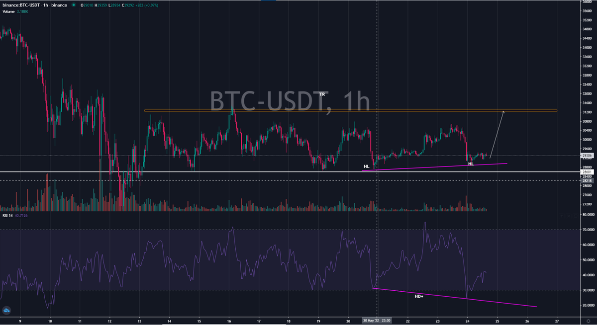و در حال جنگ برای افزایش قیمت بیت هستند ،واگرایی مخفی مثبتی را مشاهده میکنید که نشون از بازار صعودی داره