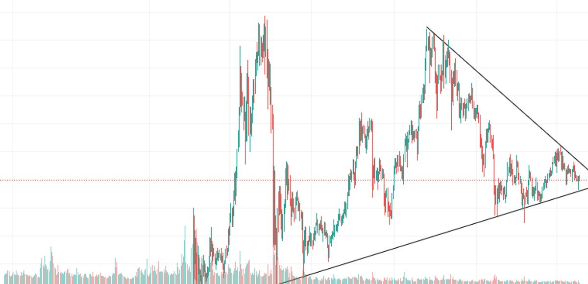 بایننس کوین در حال حاضر درون یک مثلث قرار گرفته است که اگر بتواند مثلث را به سمت بالا بشکند میتوان متصور شد که بایننس کوین قیمت های بالاتری را به خود خواهد دید.