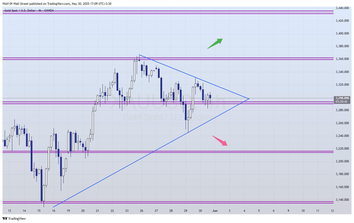 در صورت عبور از این ناحیه و رشد قیمت انتظار پولبک به محدوده 3360 دلار را خواهیم داشت