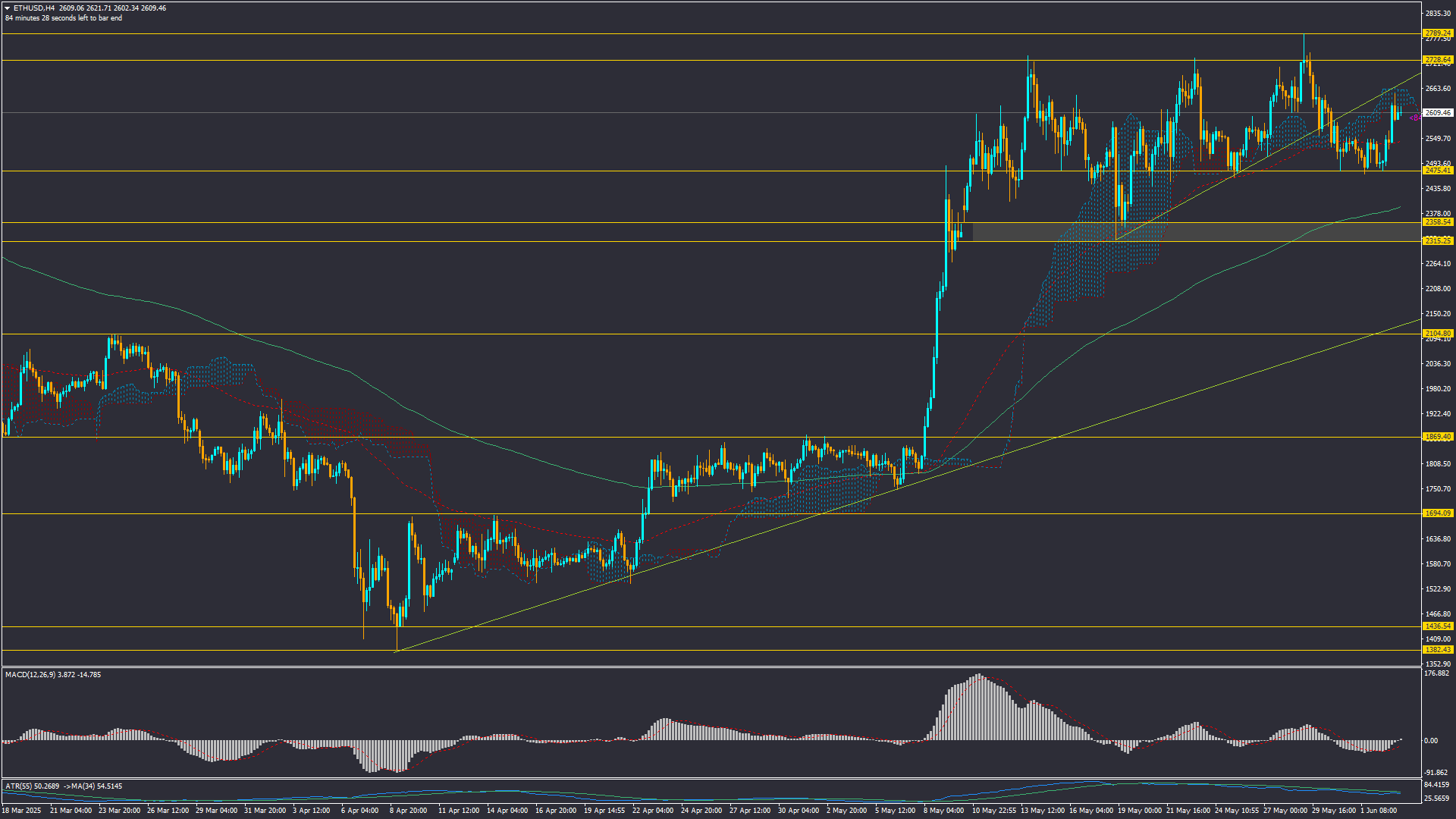 از دیدگاه تکنیکالی در نمودار اتریوم ETHUSD قیمت در محدوده رنج 2470 تا 2740 در حال حرکت است. در حال حاضر در میان مدت احتمال اصلاح بیشتر و کاهش تقاضا تا محدوده حمایتی 2300 وجود دارد.