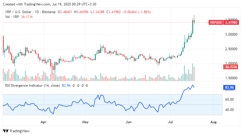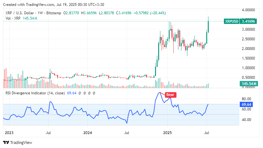 اگر RSI بالای ۷۰ برود و قیمت به مقاومت ۳.۵ نزدیک شود، احتمال کاهش وجود دارد.