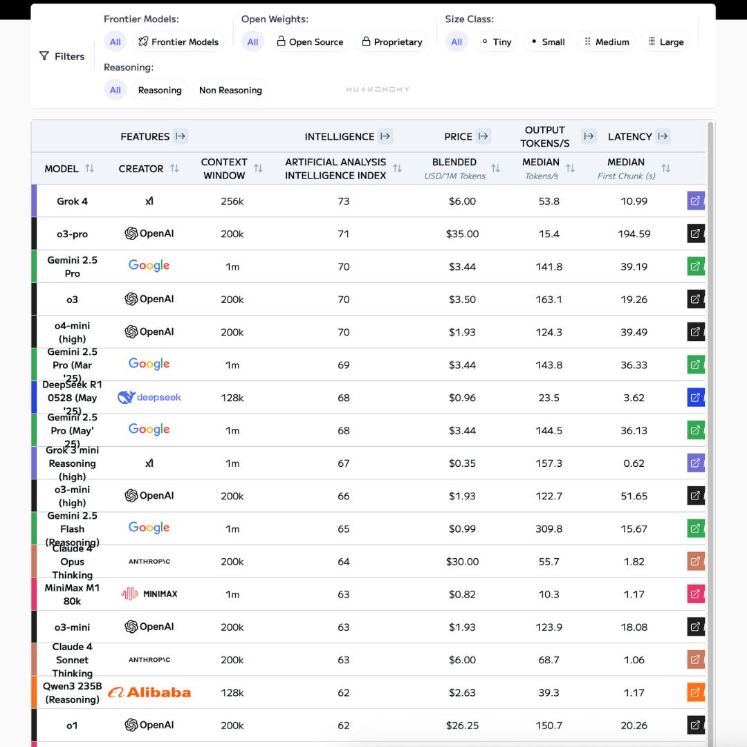تقریبا اون بالای صفحه فیلترهایی که استفاده کرده نشون میده ذهن فردی که اونو ایجاد کرده بر چه اساسی این ۱۵ تا ۲۰ ردیف #AI هوش مصنوعی رو لیست کرده{ Model, Creator Corporation, پنجره متنی، خروجی بر ثانیه همون زمان تولید محتوا، خروجی محتوی، تاخیر و..} ولی این تحلیل در کجا استفاده خواهد شد و فردی که الان میخواد ازش استفاده کنه دارای چه قدرت و اختیاراتی هست تعیین میکنه یه برگ A4 از کجا سردرمیاره و چه نتایجی به همراه داره.