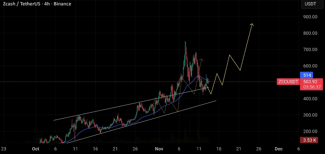 پس از یک افزایش انفجاری از 308 دلار به 580 دلار، خریدارآ با قدرت از ناحیۀ حمایتی 450 تا 490 دلار دفاع میکنن. اگه این سطح همچنان حفظ بشه، مومنتوم میتونه ZEC رو، به سمت 720 تا 850 حتی 900 دلار سوق بده.