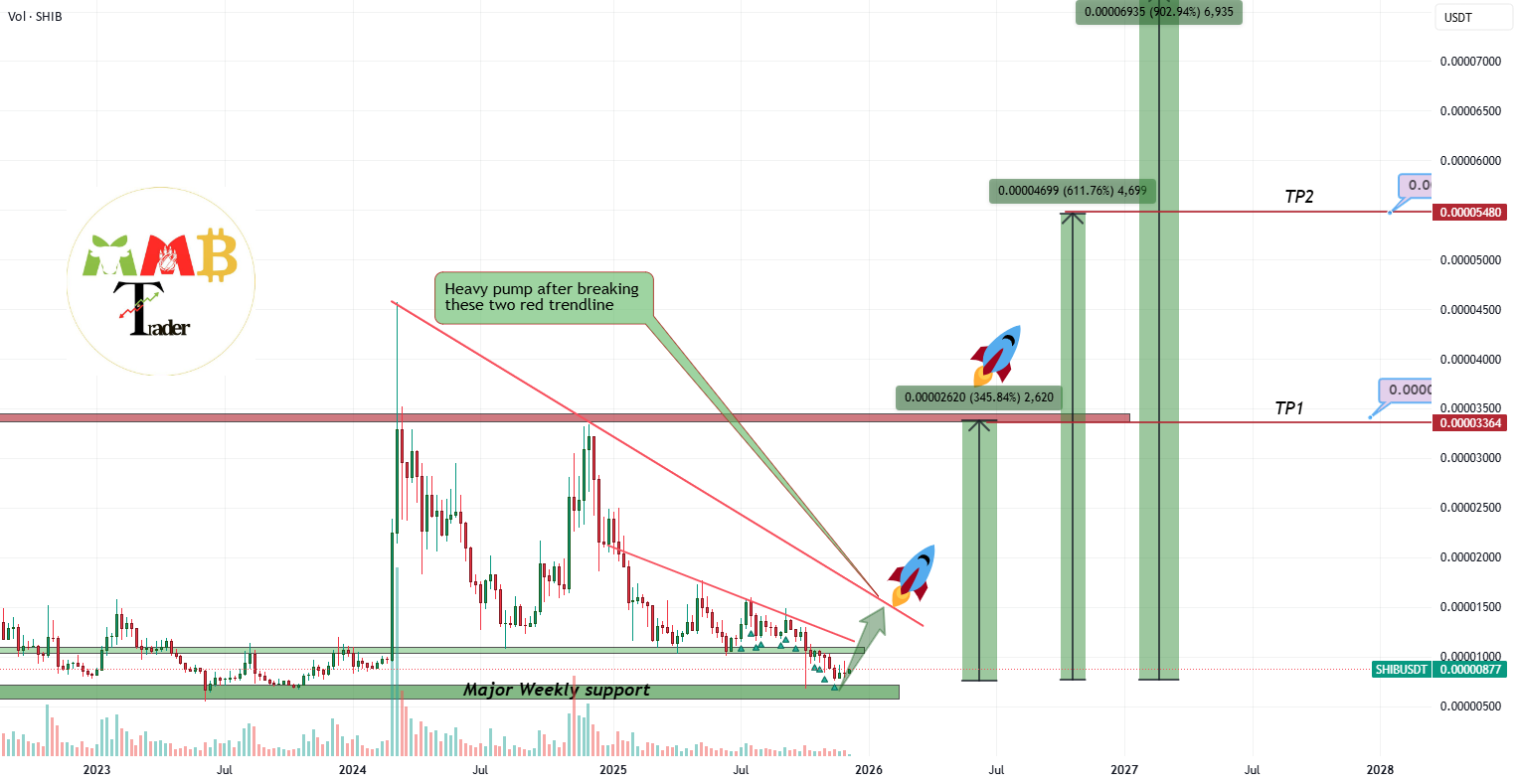 ساختار تکنیکال SHIB یک ستاپ معاملاتی با پتانسیل بالا رو نشون میده. بر اساس این تحلیل، احتمال رشد ۵ تا ۷ برابری از قیمت فعلی ۰.۰۰۰۰۰۸ دلار وجود داره.