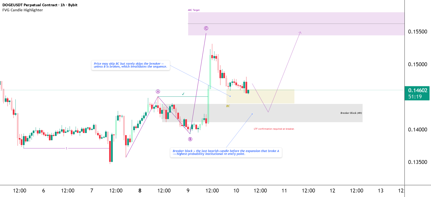 این ستاپ طرح فعلی منه: ساختار → بریکر → تایید LTF → حرکت به سمت C-Target.