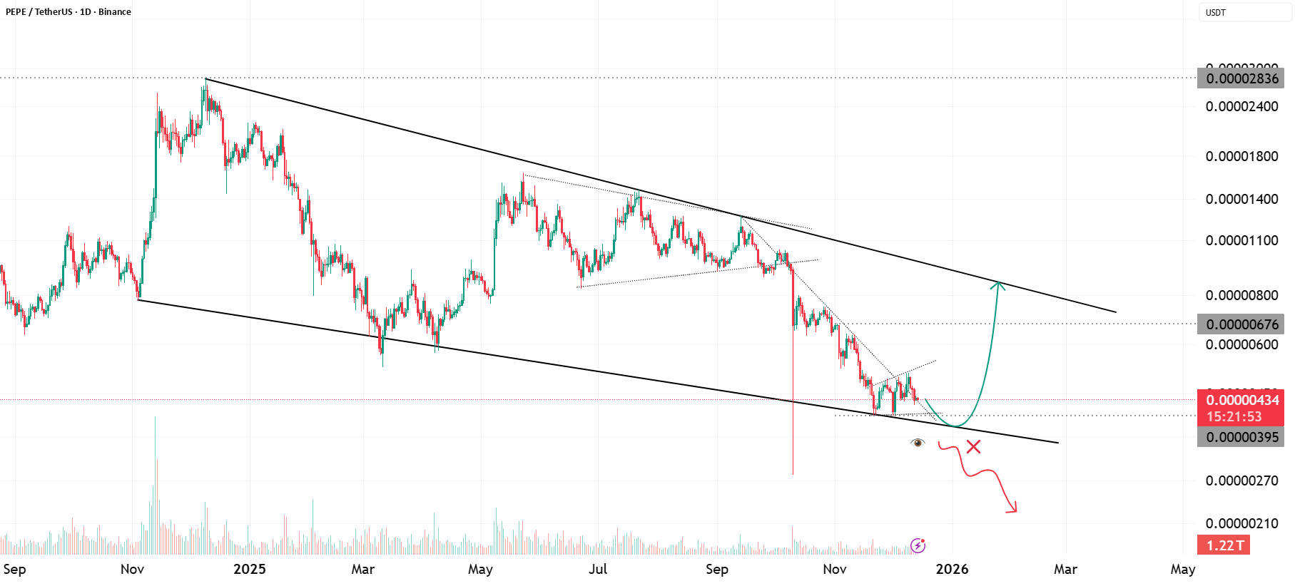 پپه (PEPE) الان تو یک موقعیت جالبی قرار داره که میتونه فرصت خوبی برای معاملهگرها باشه.