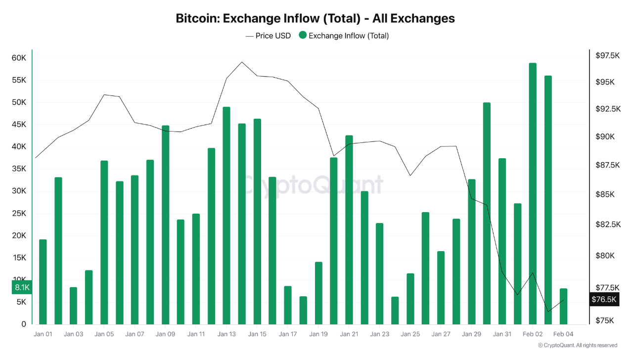 با ادامه فاز اصلاحی بیتکوین، در تاریخ 2 و 3 فوریه شاهد بزرگترین میزان ورود BTC به صرافی بایننس از ابتدای سال بودیم.