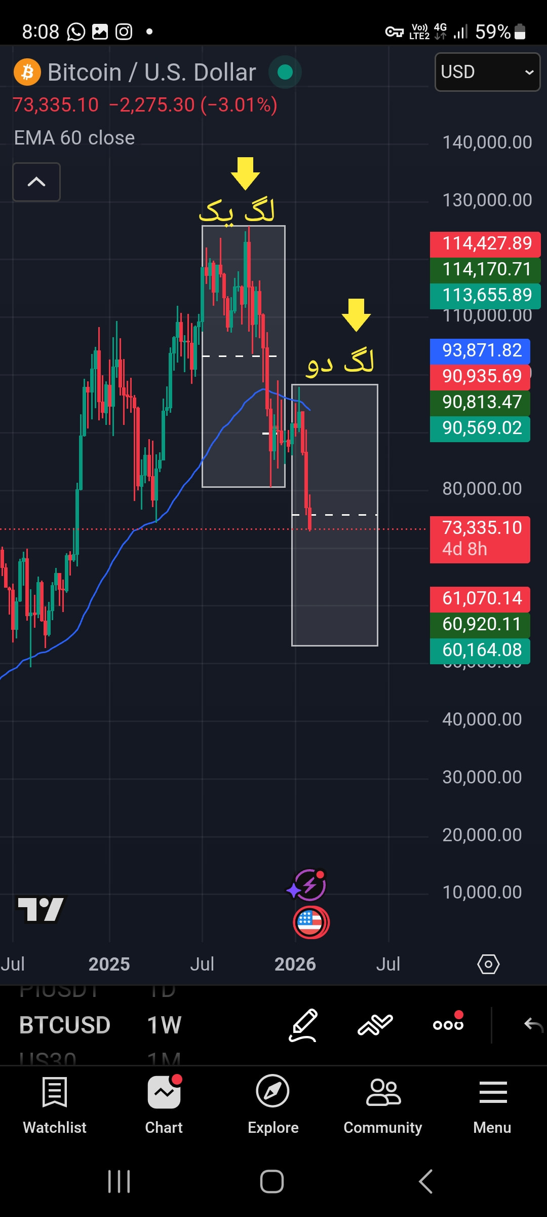 درود بر شما امیدوارم سلامت باشید.تحلیل بیت در تایم هفتگی اگر بخواهد لگ یک و لگ دو بزند انتهای لگ دو عدد ۵۳ هزار دلارو نشون میده.روی لگ یک لگ دو همیشه میشه حساب کرد.موفق باشید