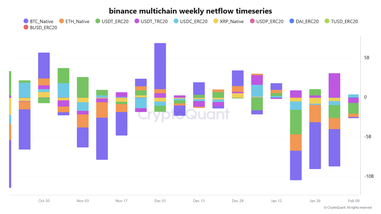 بعد از یک دوره پرنوسان که با سه هفته متوالی فرار سرمایه گسترده مشخص شد، آخرین دادههای Binance Multichain Weekly Netflow نشان میدهد که روند خروجی بهطور قابلتوجهی کاهش یافته است. به نظر میرسد بازار بعد از این طوفان وارد فاز ثبات نسبی شده.