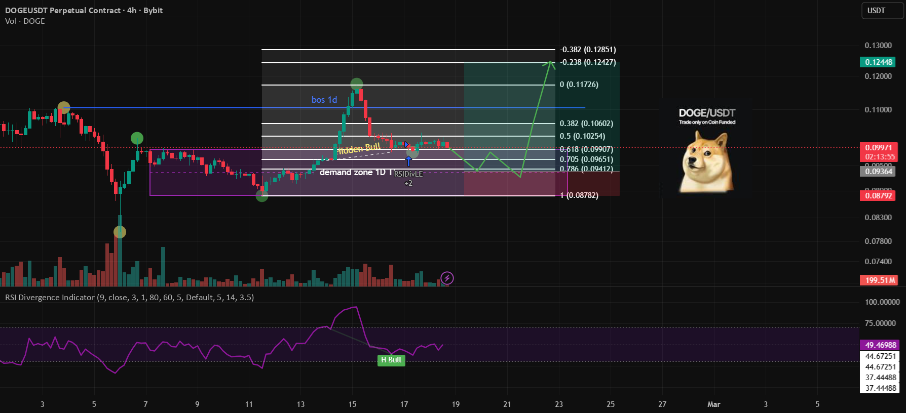 تحلیل تکنیکال دوجکوین: دایورجنس مخفی صعودی در ناحیه تقاضای کلیدی