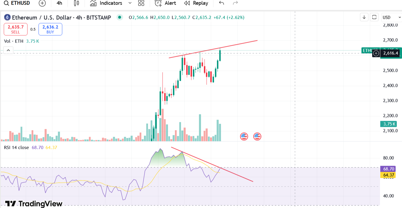 سیگنال فروش اتریوم : تنها در محدوده قیمتی 2550 دلار پوزیشن فروش باز شود
